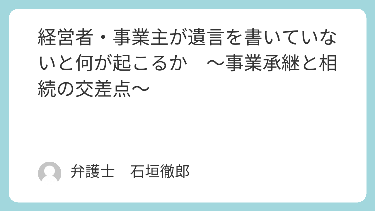 経営者・事業主が遺言を書いていないと何が起こるか ~事業承継と相続の交差点~